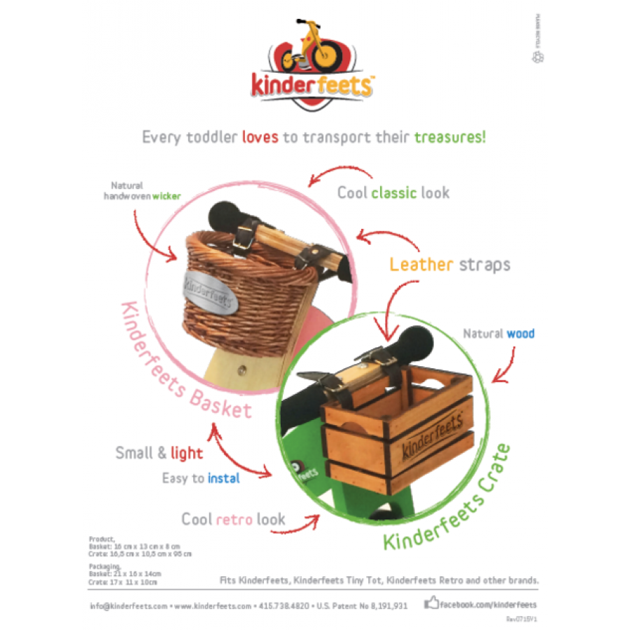 This cute classic basket fits Kinderfeets Classic, Retro and Tiny Tot and most other balance bike brands